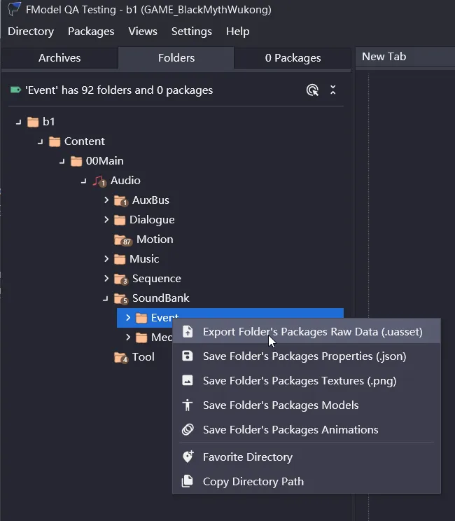 导出后的文件均在 FModel 根目录下 Output\Exports 中。