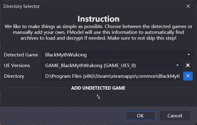 写完后,OK 即可。然后你大概率会遇到报错,点击 OK 并关闭 FModel,我们还需要再整一些依赖。