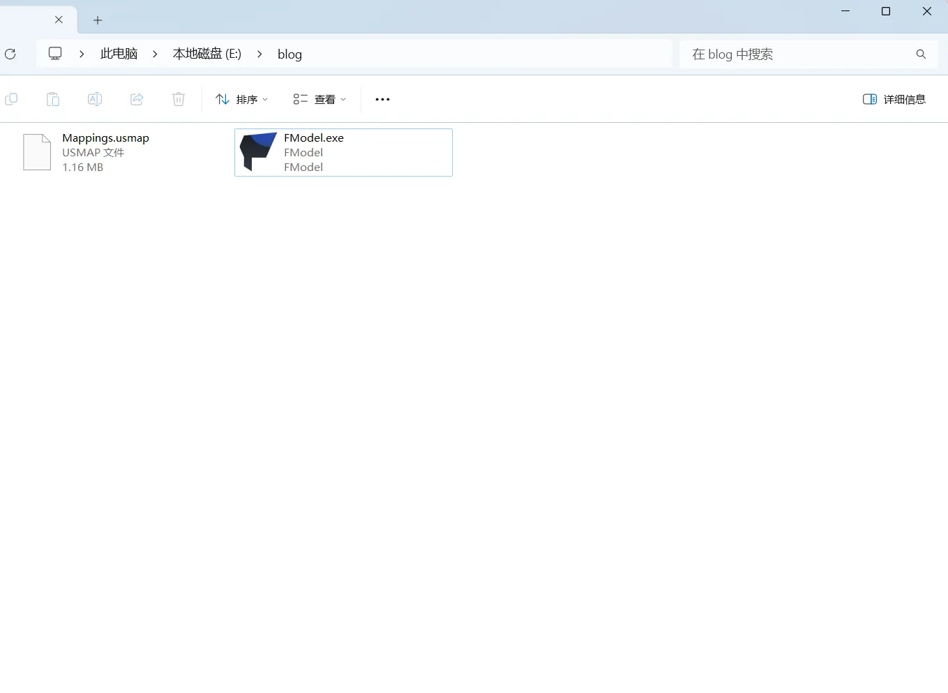 首先将 Fmodel 放到一个有足够空间的盘内(看你想拆多少东西,最好大于几十G)比如这样: